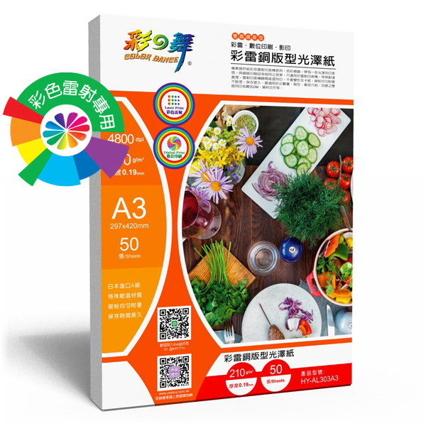 >{振昌文具}【請先來電洽詢庫存】彩之舞 HY-AL303A3 彩雷銅版型光澤紙 210g A3 - 50張/包