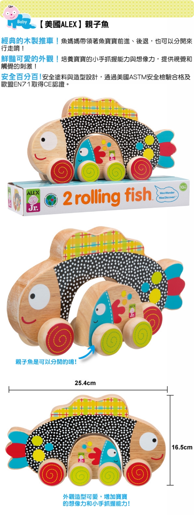 >{振昌文具}【請先來電洽詢庫存】【美國ALEX】1951F-1 親子魚 木製推車 /盒