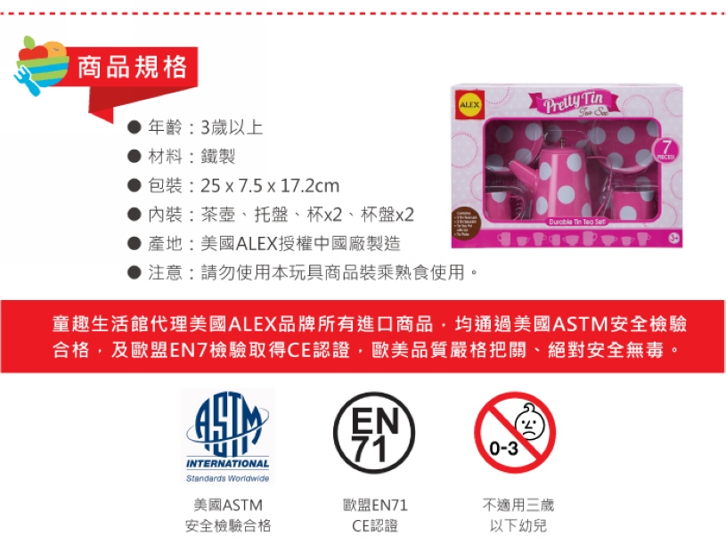 {振昌文具}【請先來電洽詢庫存】【美國ALEX】705PD 兒童家家酒 漂亮女孩茶具組 /組