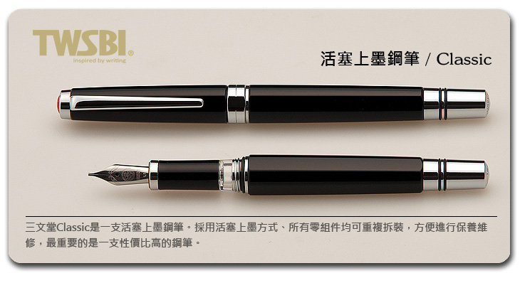 商品品名:臺灣 TWSBI 三文堂 Classic 黑桿活塞上墨鋼筆-Stub 1.1(新版) / 支