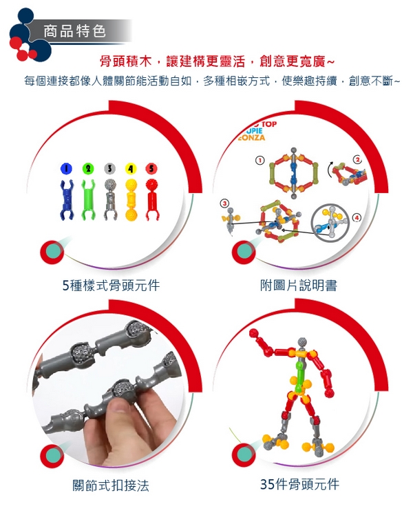 >{振昌文具}【請先來電洽詢庫存】【美國ZOOB】0Z11035 骨頭積木-創建系列 35pcs