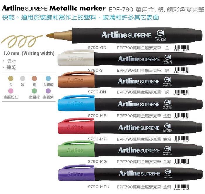 日本 寫吉哈達 EPF790 萬用金屬彩色 1mm 麥克筆 嘜克筆 12支 /盒