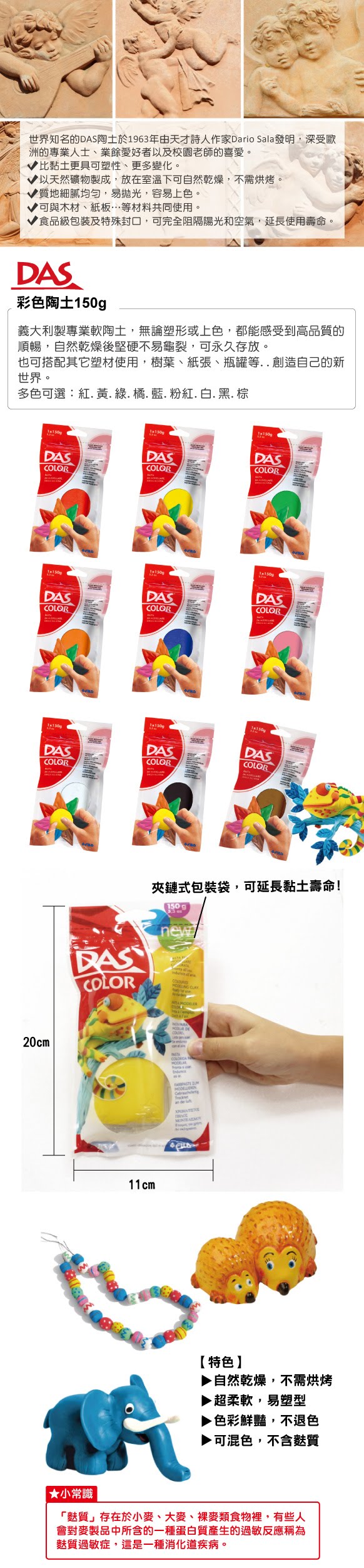 >{振昌文具}【請先來電洽詢庫存】【義大利 DAS】彩色陶土150g (3874) /包 8色可選擇