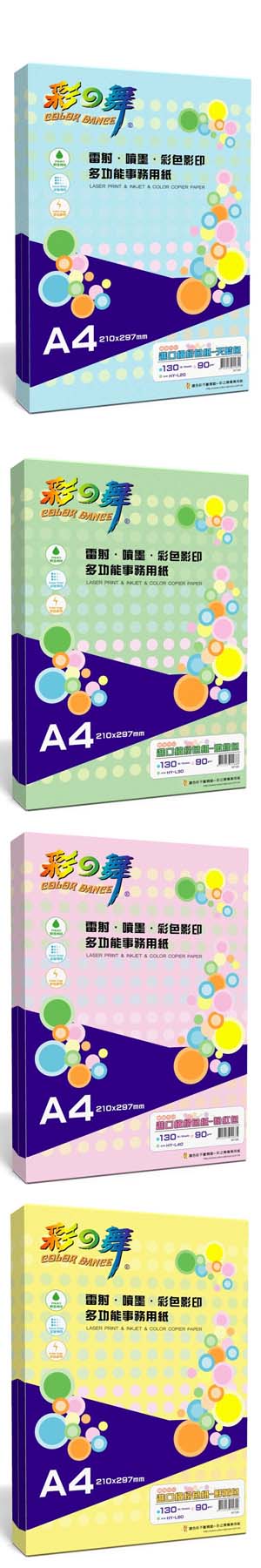 商品特性:雷射、噴墨、彩色影印多功能事務用紙,進口紙材,90g/㎡比一般影印紙厚,顏色於紙漿就加入與國產用染色不同不會輕易退色,且色彩溫和自然看起特別舒服,紙面平滑處理在一般噴墨雷射影印效果佳,尤其在雷射列印順暢不卡紙碳粉不易脫落,使用上活潑有創意不像白色紙那麼單調,視覺效果佳,適用於彩雷或彩印專業機器輸出,以及辦公室文件或公告等。