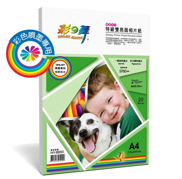 >{振昌文具}【請先來電洽詢庫存】彩之舞 HY-B850 噴墨特級雙亮面相片紙-防水(雙亮面) 210g A4 - 20張/包
