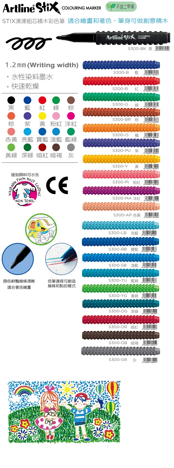 日本 寫吉哈達 ETX300 STIX凍凍粗芯積木 彩色筆 不含二甲苯 12支 /盒