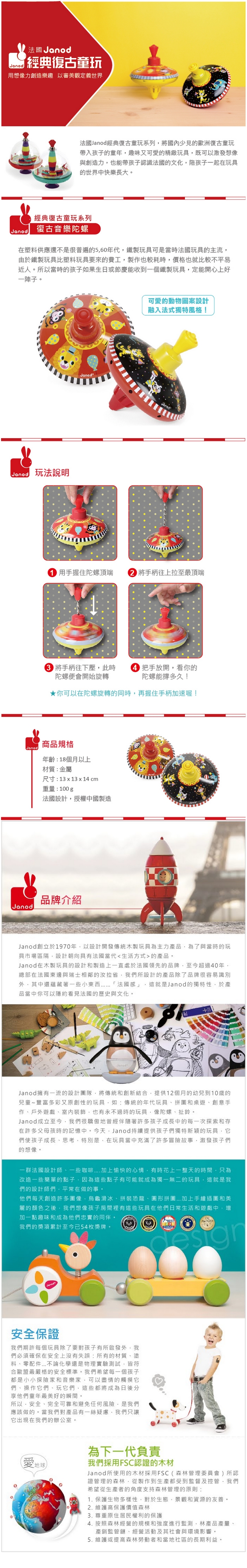 >{振昌文具}【請先來電洽詢庫存】【法國Janod】復古音樂陀螺 J04124 /個