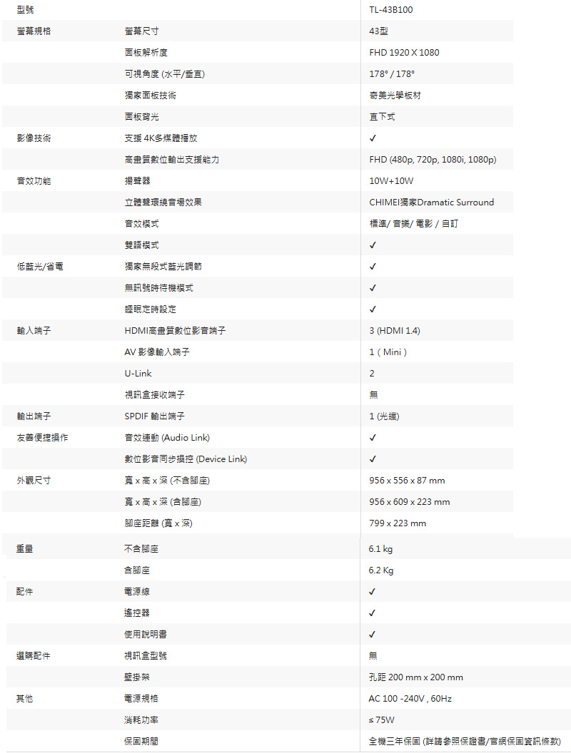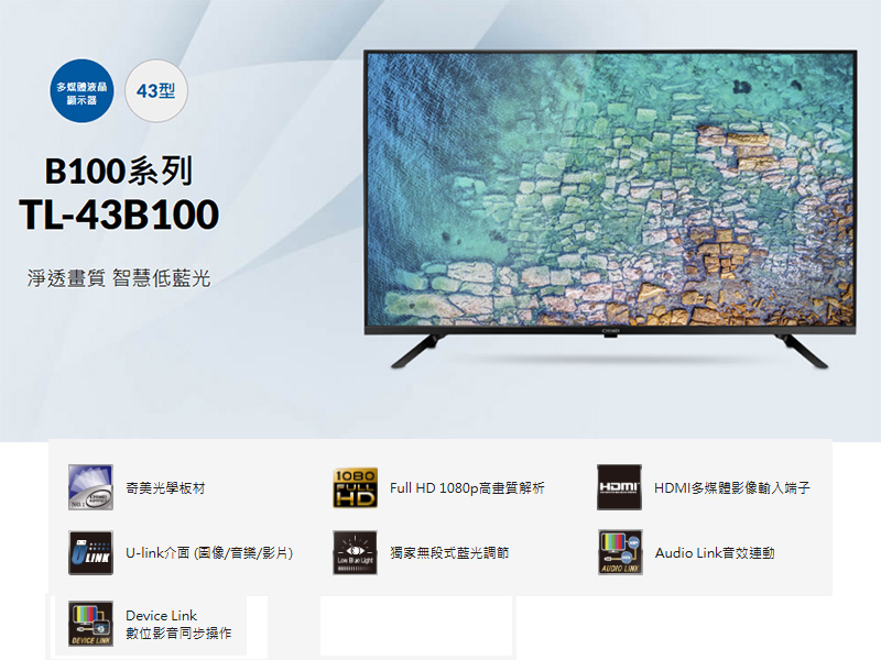 >奇美 CHIMEI B100系列 43型 多媒體液晶顯示器 /台 TL-43B100