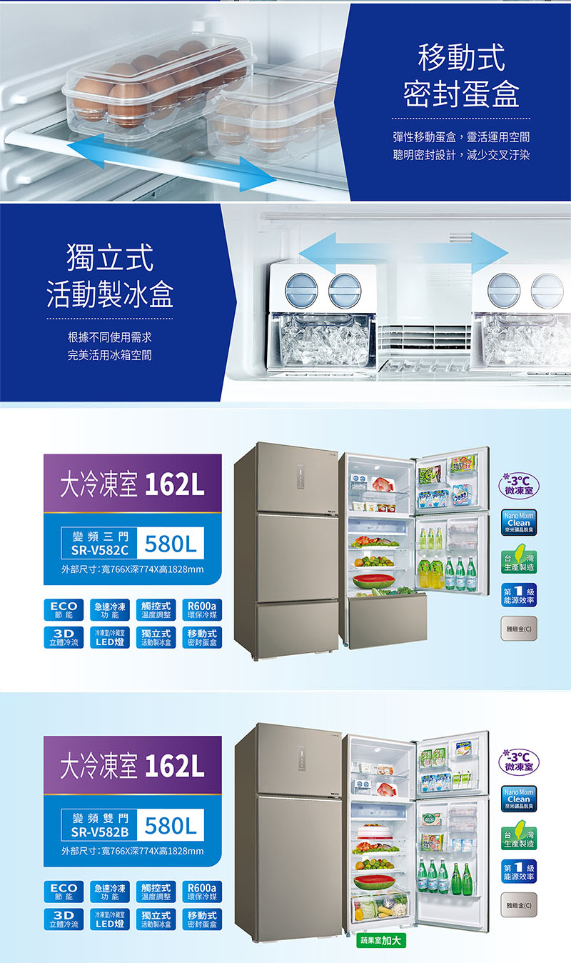 ◎容量:580公升 / 冷凍室 162L / 冷藏室 418L