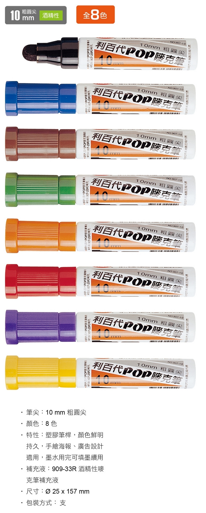 >利百代 10mm 粗圓尖 酒精性 POP 907-10 嘜克筆 麥克筆 /支