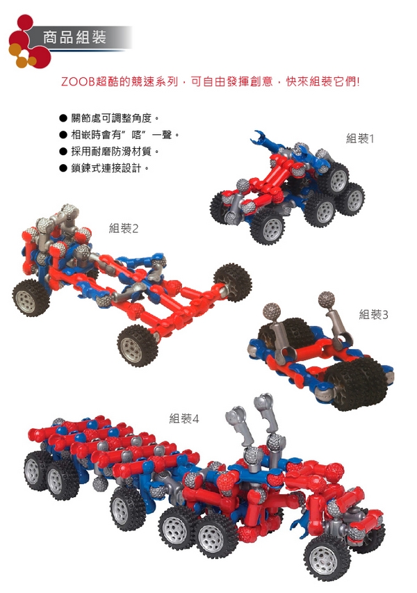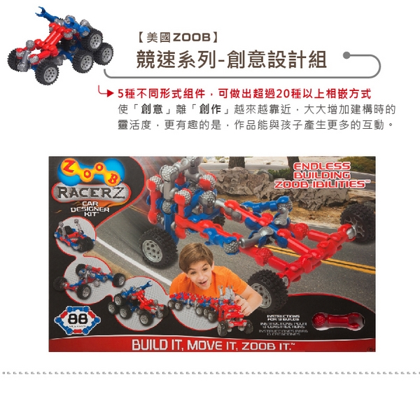 ZOOB競速系列,是大男生小男生都熱愛的系列,想想看,讓自己建構的產品動起來,是多麼興奮
