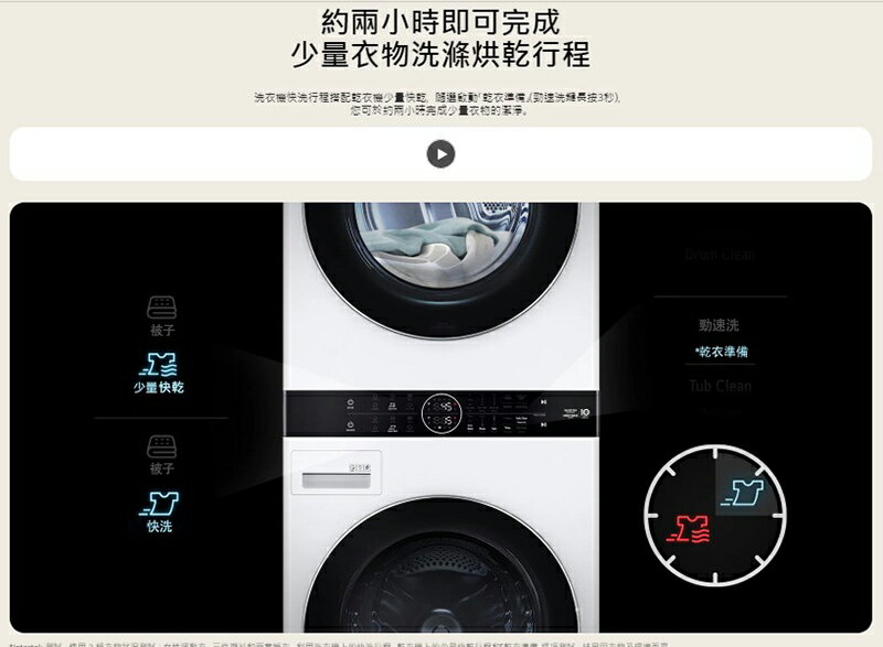 TurboWash3D™ 360 勁速洗 30分鐘完成洗衣/乾衣預熱準備
