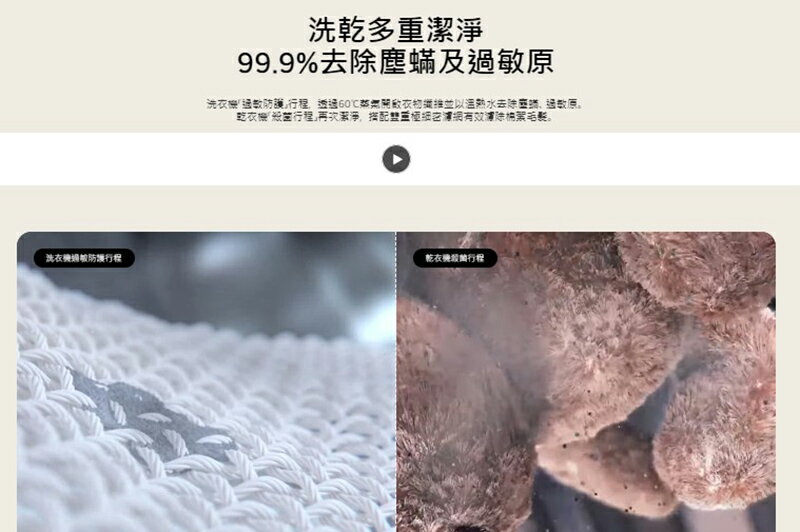 蒸氣洗衣/溫和乾衣 60℃殺菌除蟎