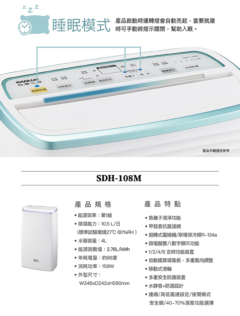 >SANLUX台灣三洋 10.5公升/日 一級能效 除濕機 /台 SDH-108M