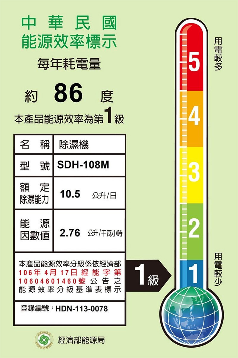 SANLUX台灣三洋 10.5公升/日 一級能效 除濕機 /台 SDH-108M
