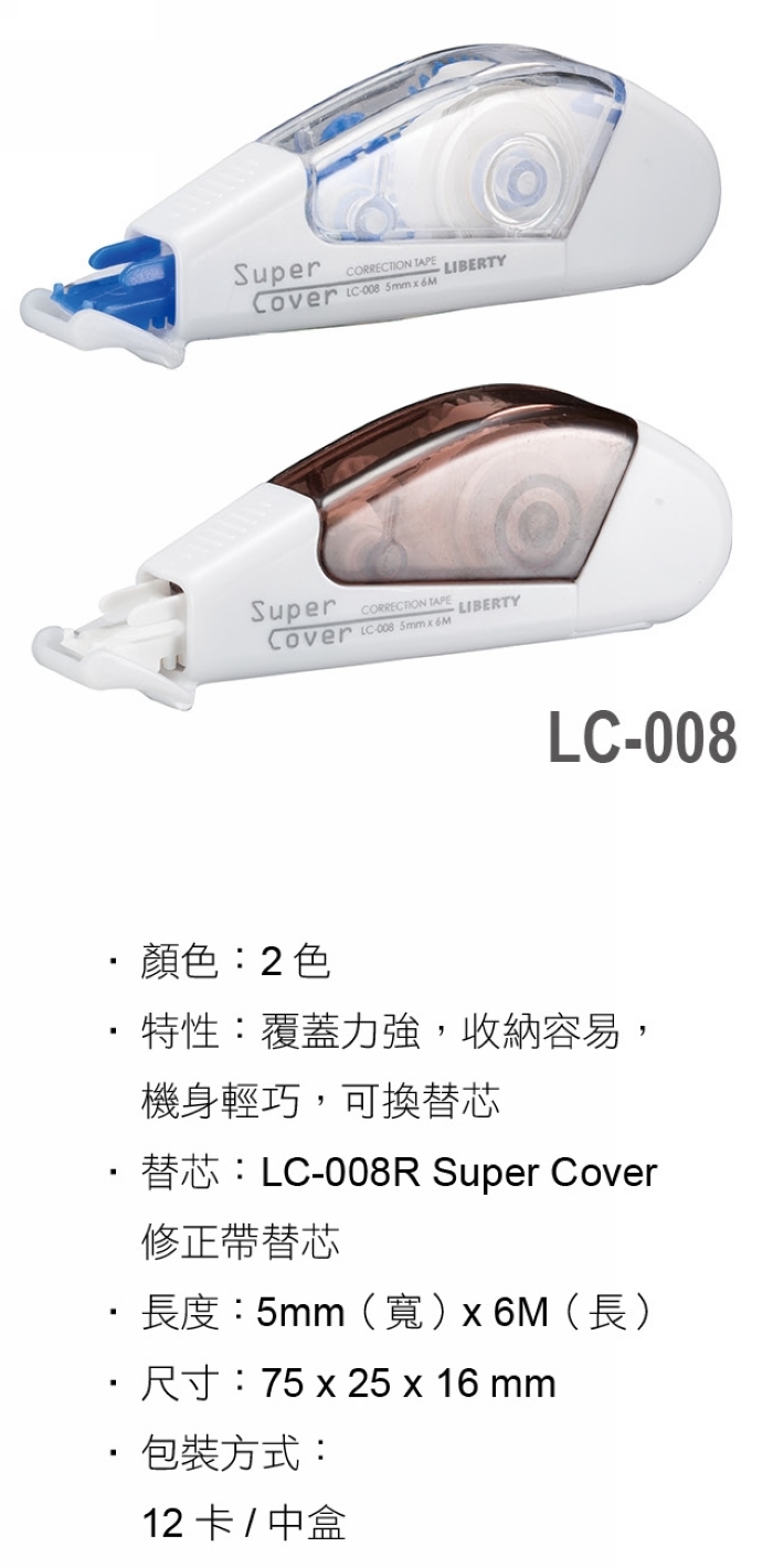 >利百代 Super Cover LC-008 修正帶 12個/盒 (顏色隨機出貨)