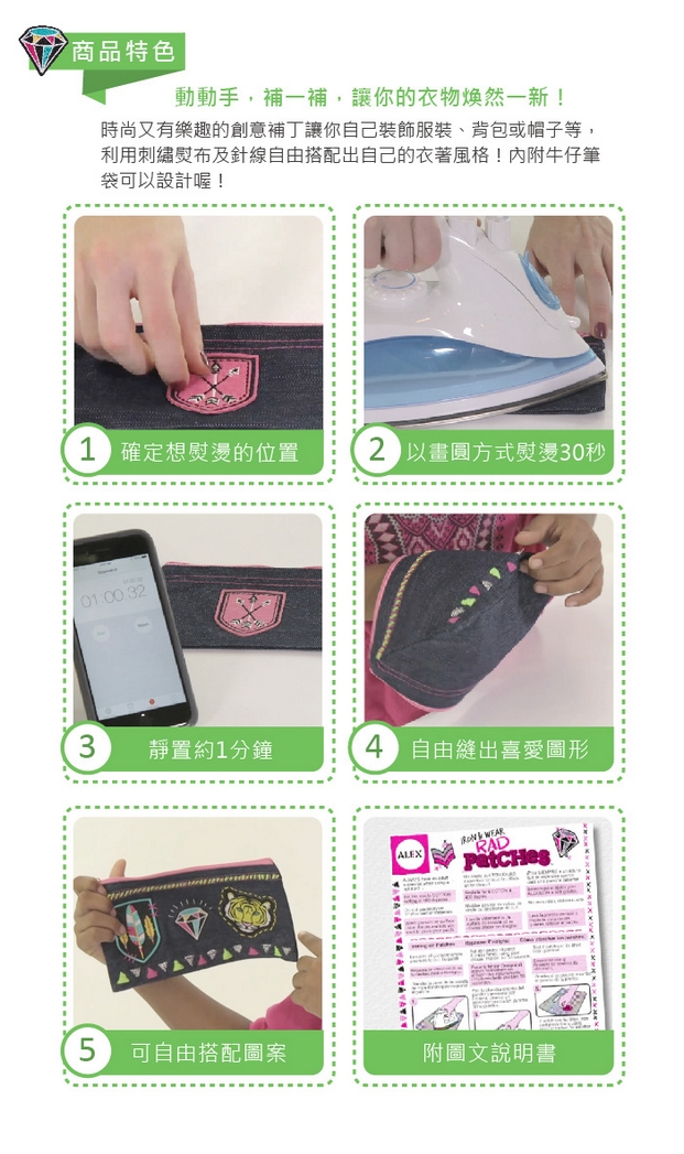 利用刺繡熨布及針線自由搭配出自己的衣著風格!