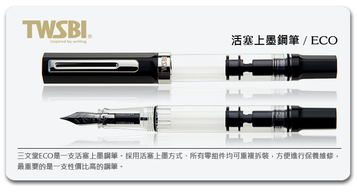 商品品名:臺灣 TWSBI 三文堂 ECO 黑色活塞上墨鋼筆 / 支