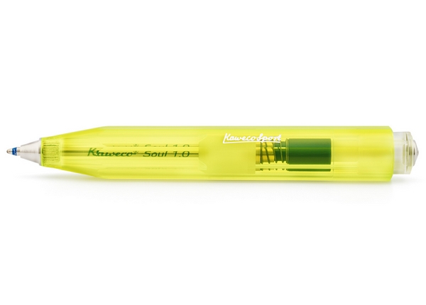 延續1935年經典八角形,輕薄設計,全長106mm且直徑只有14mm,筆身輕巧,易於攜帶。採用堅固且輕盈的ABS強力塑膠材質,簡易的按壓式機構。蓋頂刻有金色的Kaweco標誌與筆尖。