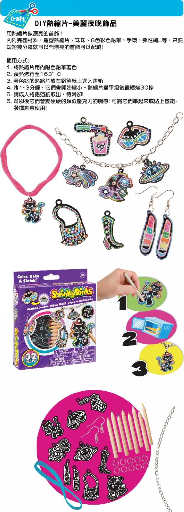 彩繪神奇的魔術紙,只要著色→烘烤→壓平簡單的步驟,就可以完成手環、耳環等美麗的飾品。!!