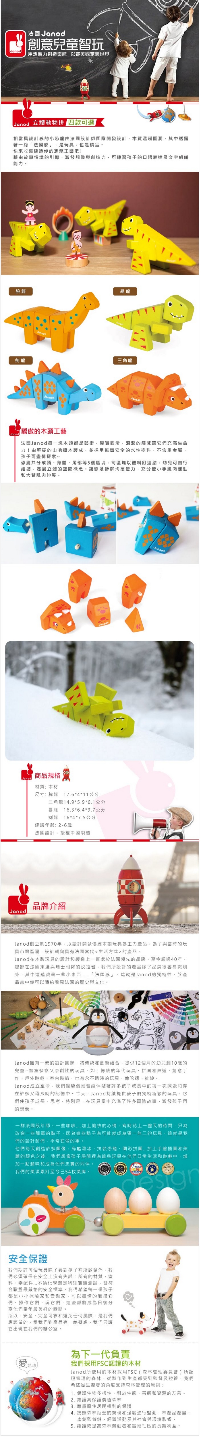 >{振昌文具}【請先來電洽詢庫存】【法國Janod】立體動物拼-恐龍(四款可選) J08226 J08227 J08228 J08229 /組
