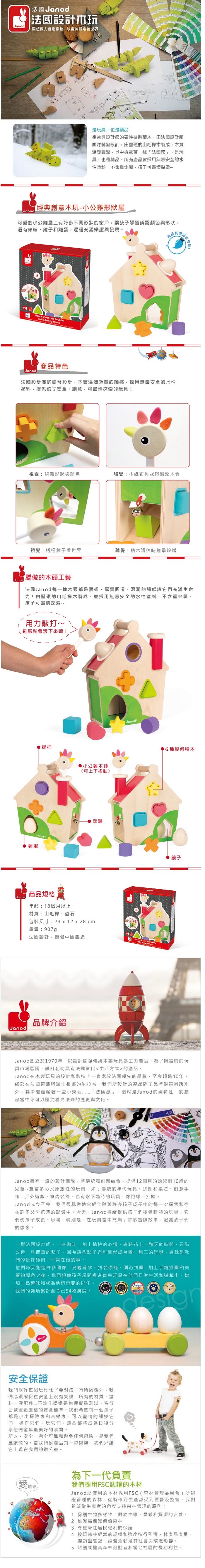 >{振昌文具}【請先來電洽詢庫存】【法國Janod】經典創意木玩-小公雞形狀屋 J08232 /組