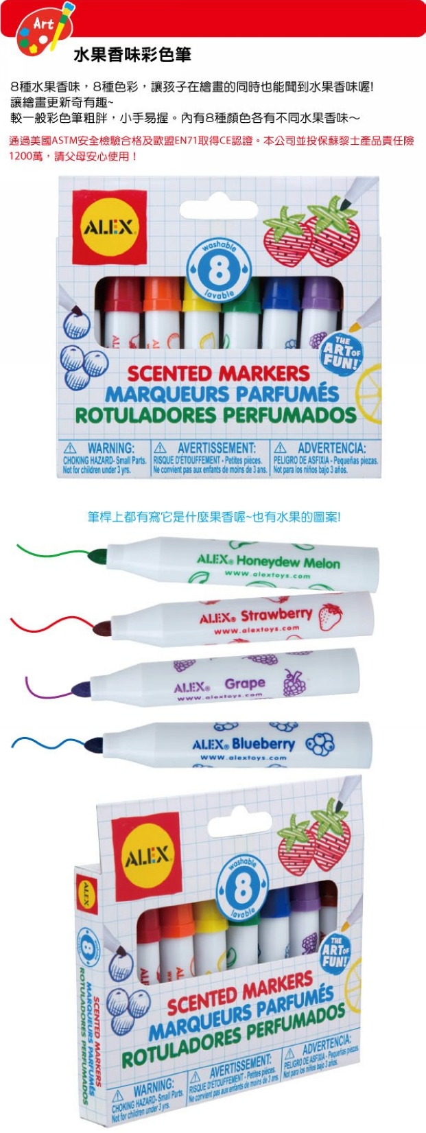 >{振昌文具}【請先來電洽詢庫存】【美國ALEX】231 水果香味彩色筆 8色 /組