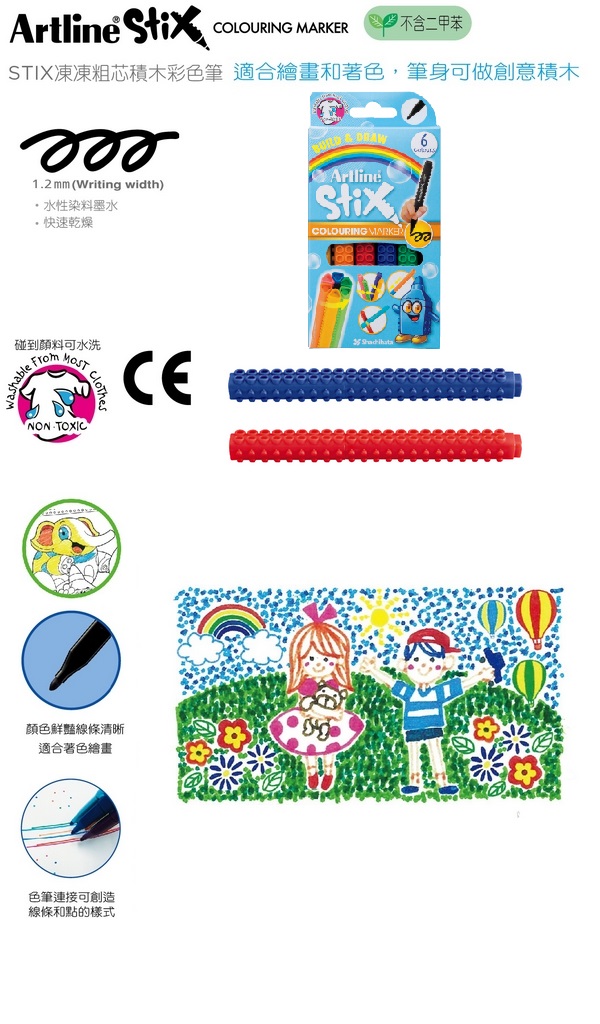 日本 寫吉哈達 SETX300-6WK STIX凍凍粗芯積木 彩色筆 不含二甲苯 6色 /盒