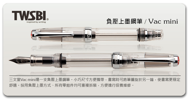商品品名:臺灣 TWSBI 三文堂 VAC mini 透明筆桿負壓上墨鋼筆 / 支