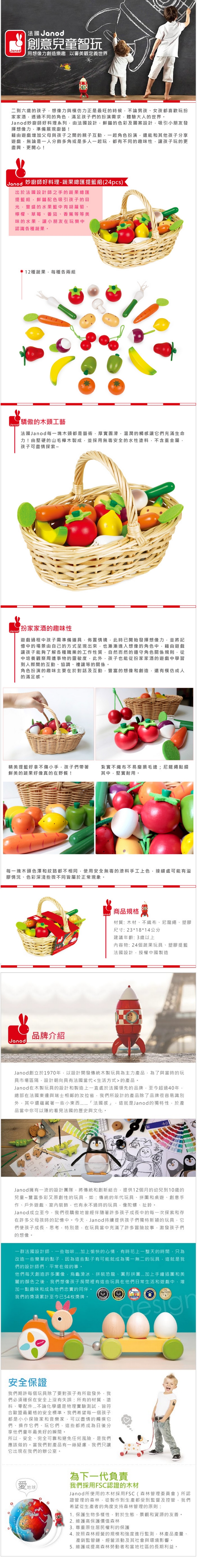 >{振昌文具}【請先來電洽詢庫存】【法國Janod】妙廚師好料理-蔬果總匯提籃組(24pcs) J05620 /組