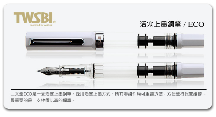 商品品名:臺灣 TWSBI 三文堂 ECO 白色筆桿活塞上墨鋼筆 / 支