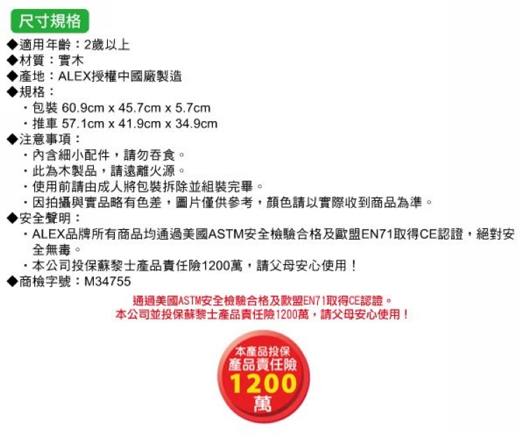 {振昌文具}【請先來電洽詢庫存】【美國ALEX】48WN 木質玩具收納手推車 /台