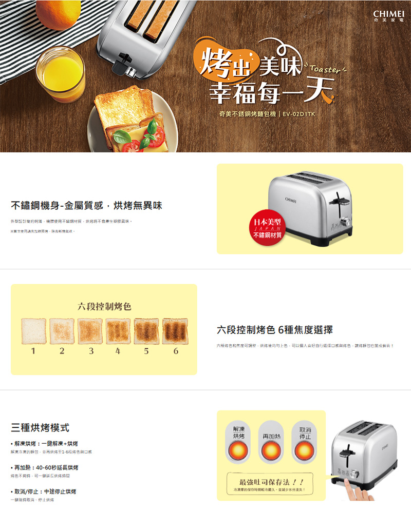 奇美 CHIMEI 烤麵包機 /台 EV-02D1TK