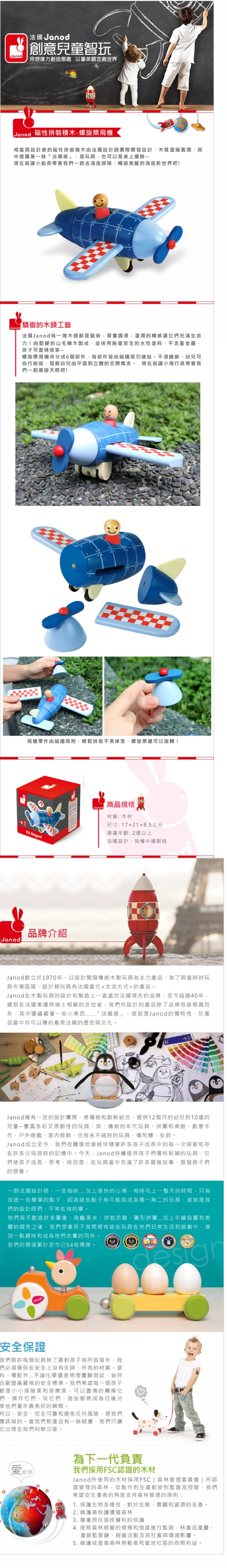 >{振昌文具}【請先來電洽詢庫存】【法國Janod】磁性拼裝積木-螺旋槳飛機 J05205 /組