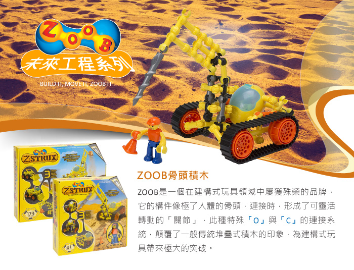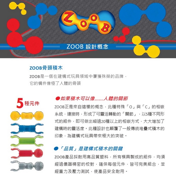 ZOOB是一個在建構式玩具領域中屢獲殊榮的品牌,它的構件像極了人體的骨頭,連接時,形成了