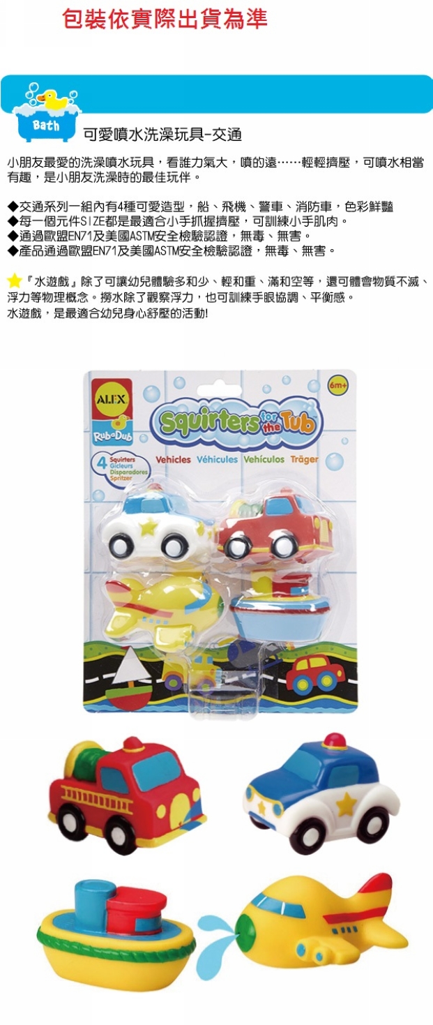 {振昌文具}【請先來電洽詢庫存】【美國ALEX】700TN 可愛噴水洗澡組-交通 /組