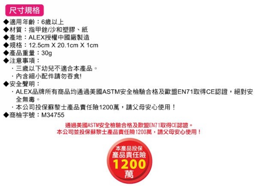 >{振昌文具}【請先來電洽詢庫存】【美國ALEX】795 時尚少女美甲貼(三款可選) /組
