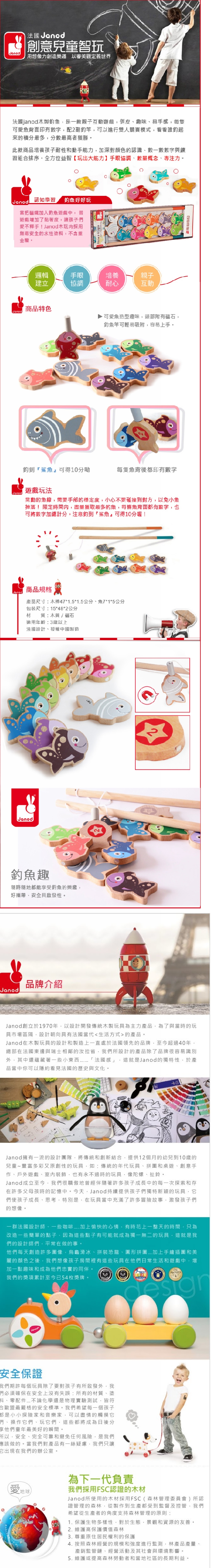 當把磁鐵加入釣魚遊戲中,替遊戲增加了黏著度,讓小傢伙們愛不釋手!Janod木玩均採用無毒安全的