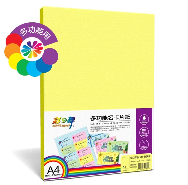 {振昌文具}【請先來電洽詢庫存】彩之舞 HY-D20 進口彩色卡紙 160g A4 - 20張/包 HY-D30 HY-D40 HY-D60