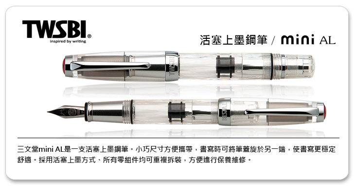 商品品名:臺灣 TWSBI 三文堂 mini AL 陽極活塞上墨鋼筆-Stub 1.1 / 支