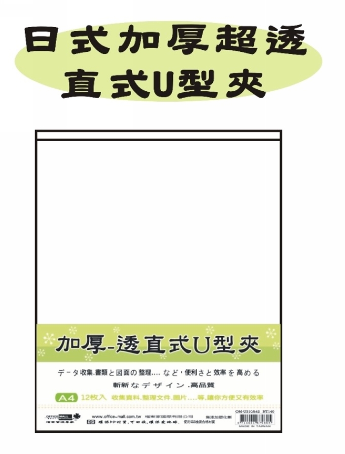 >【檔案家】OM-U310A42 日式(加厚超透)A4直式U型夾 12入/打