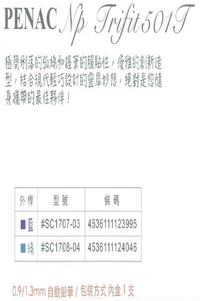>O.B. PENAC Np Trifit501T自動鉛筆 1.3mm (綠 / 1支) OB#SC1708-04
