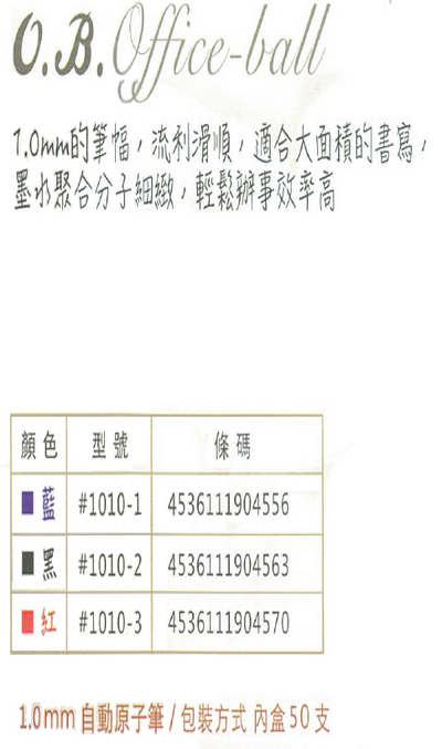 >O.B. Office-ball自動原子筆 1mm (50支/盒) OB#1010
