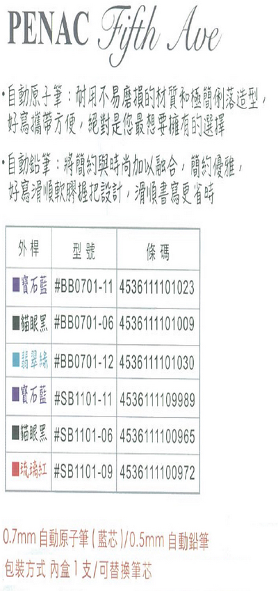>O.B. PENAC Fifth Ave自動原子筆(藍芯) 0.7mm (貓眼黑 / 1支) OB#BB0701-06