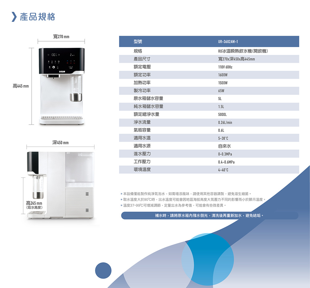 品名:RO冰溫瞬熱飲水機(開飲機)