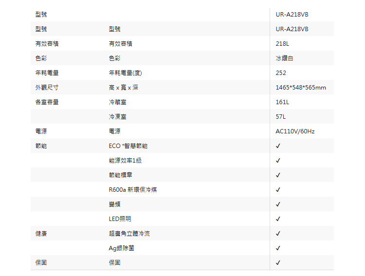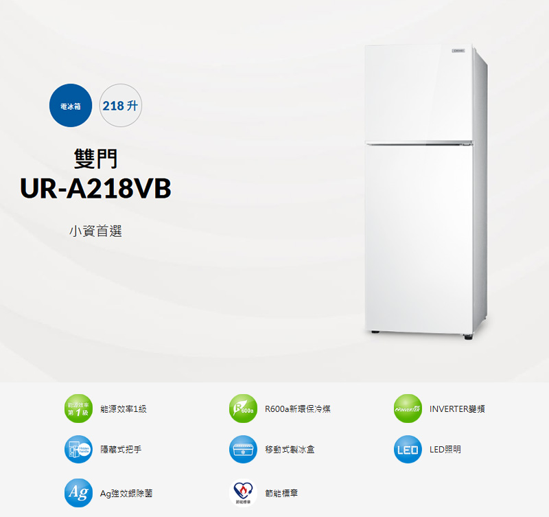 >奇美 CHIMEI 雙門變頻 218L 電冰箱 /台 UR-A218VB
