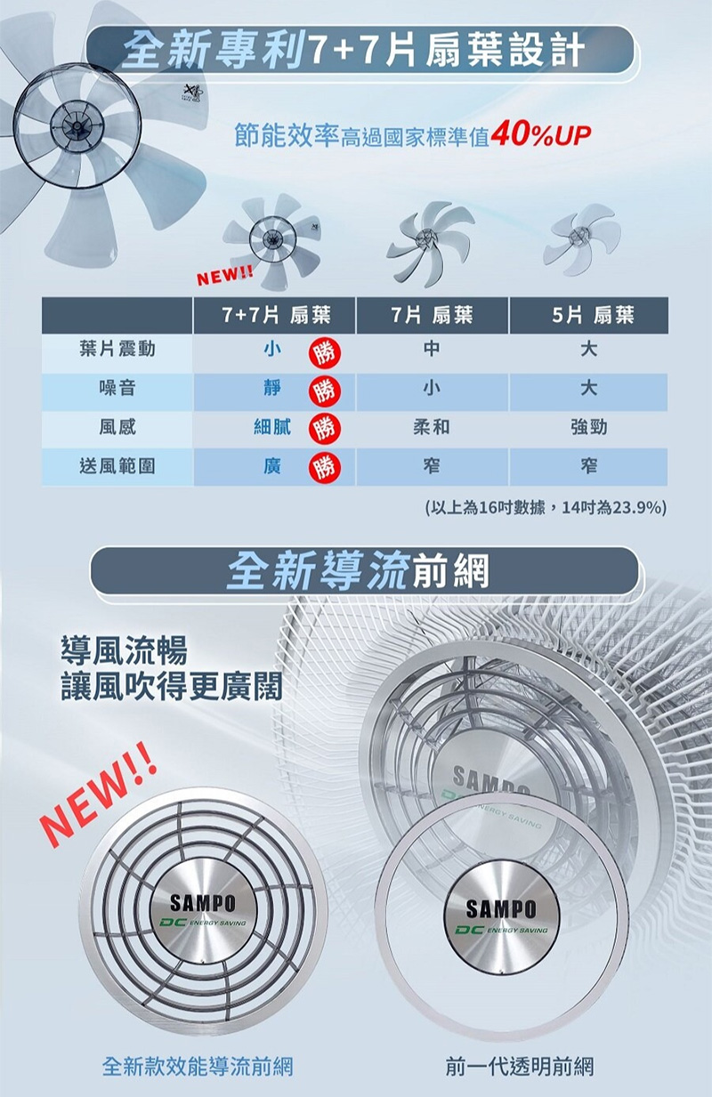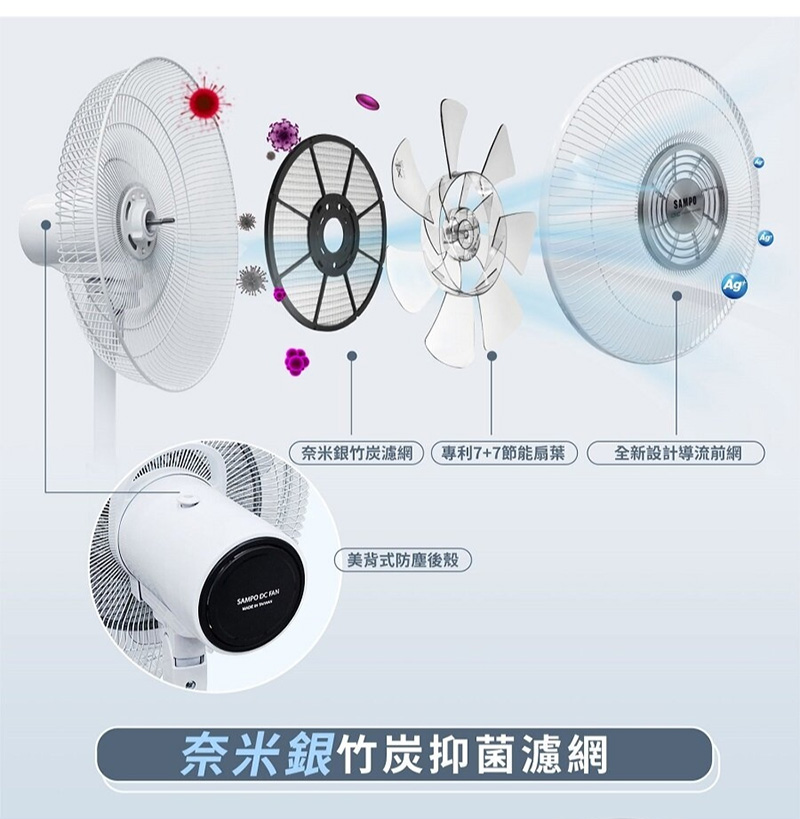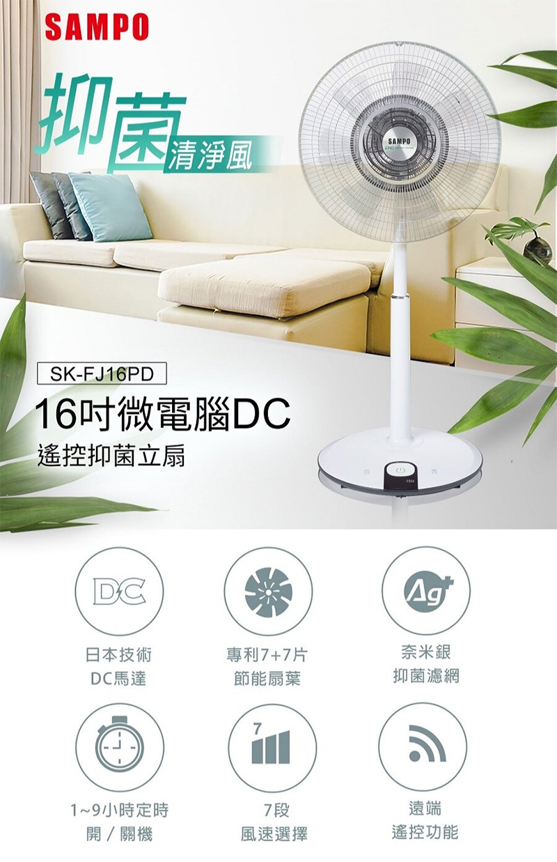 >SAMPO聲寶 16吋微電腦DC直流馬達抑菌立扇 /台 SK-FJ16PD