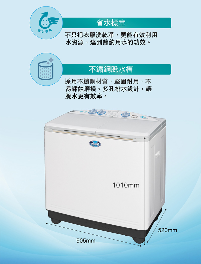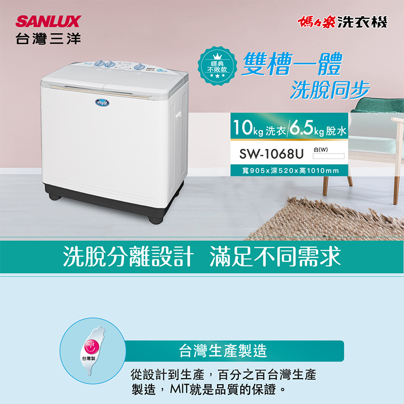 >SANLUX台灣三洋 10kg 雙槽洗衣機 /台 SW-1068U