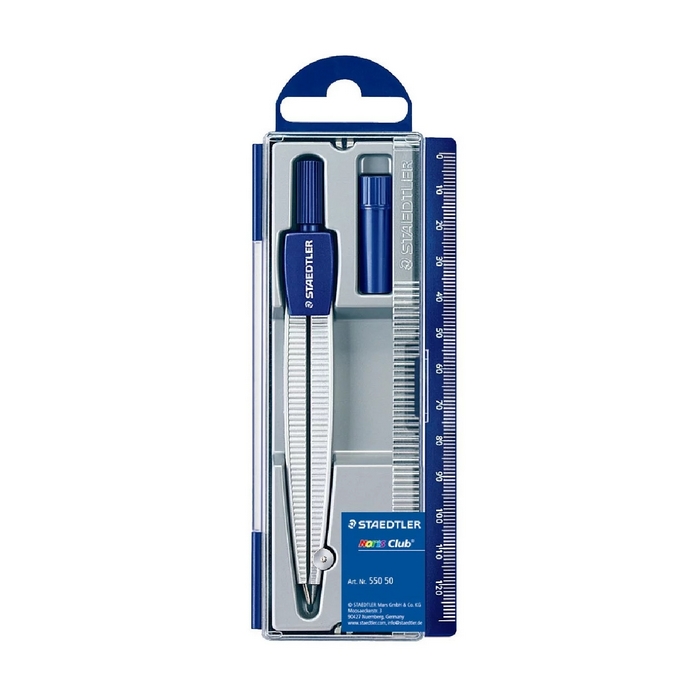 型號:MS550 50 適合初次練習畫圖的精準圓規 鈍角安全針腳 最大圓圈直徑約300mm 長度為124mm 內含:主圓規及鉛芯盒,盒邊可做直尺用途 【品牌簡介】