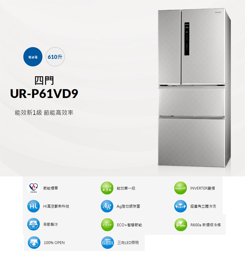 >奇美 CHIMEI 四門變頻 610L 電冰箱 /台 UR-P61VD9